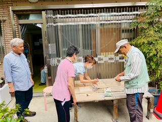 作業風景はわきあいあいとして、路木メンはたのもしく、硬いペットボトルのフタを切り刻んでくれていました。感謝!!
