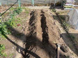 ひろちゃんファームのひろちゃんが言うには「落ち葉を溝を掘って埋めて・・・」(はい!埋めました!)